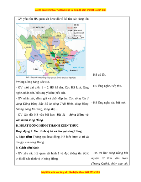 a. Mục tiêu: Thông qua hoạt động, HS biết được vị trí và tên gọi của sông Hồng. b. Cách tiến hành
