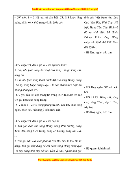 - GV yêu cầu HS đọc thông tin trong SGK tr.45 kể tên các - HS trả lời: Hồng Hà, sông
