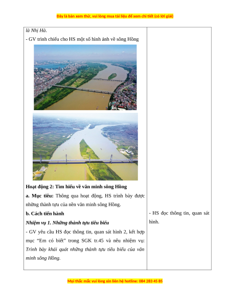 - Tìm hiểu Lịch sử và Địa lí: trình bày được một số thành tựu tiêu biểu của văn minh sông Hồng.