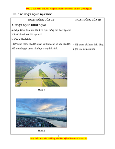 III. CÁC HOẠT ĐỘNG DẠY HỌC