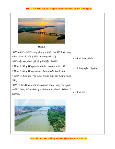 + Hình 1: Sông Hồng nhìn từ trên cao vào buổi chiều. - HS lắng nghe, tiếp thu.