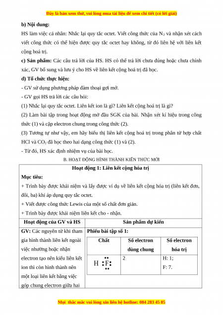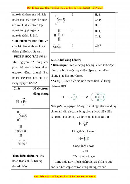 viết công thức có thể hiện được quy tắc octet hay không, từ đó liên hệ với liên kết cộng hoá trị.
