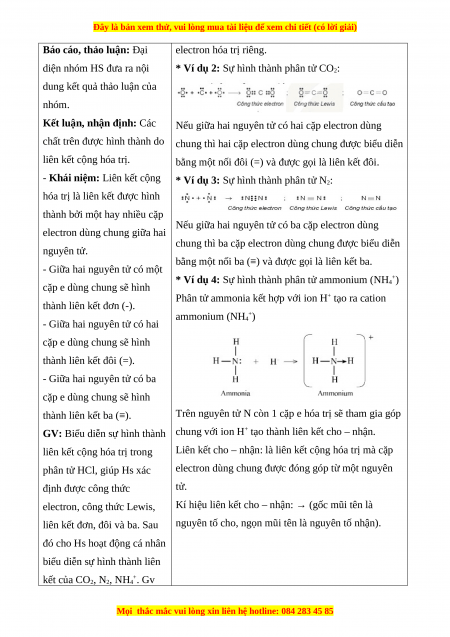 + Trình bày được khái niệm và lấy được ví dụ về liên kết cộng hóa trị (liên kết đơn,