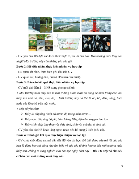 án: Tìm hiểu các yêu cầu chính của môi trường nuôi thủy sản; môi trường nuôi thủy sản