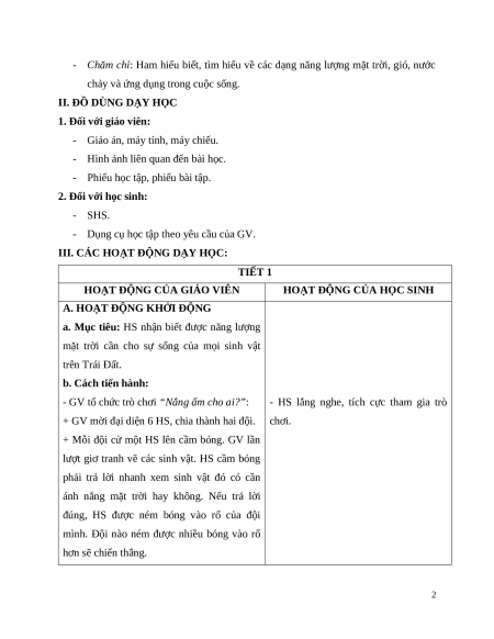 - Vận dụng được kiến thức về nguồn năng lượng mặt trời để tự làm bếp mặt trời. 3. Phẩm chất: