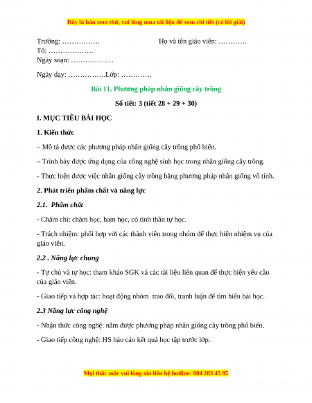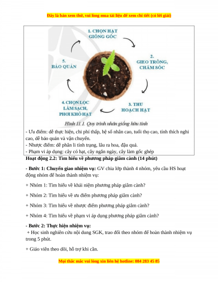 Giáo án Bài 11: Phương pháp nhân giống cây trồng Công nghệ 10 Cánh diều