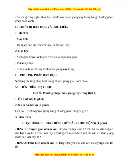 Tiết 28. Phương pháp nhân giống cây trồng (tiết 1)