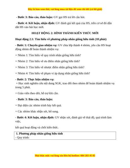 + Nhóm 1: Tìm hiểu về quy trình nhân giống hữu tính?