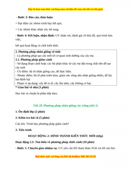 Tiết 29. Phương pháp nhân giống cây trồng (tiết 2)