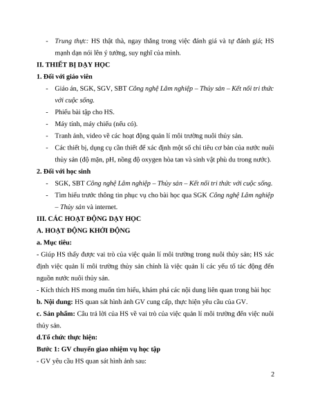 - Có ý thức vận dụng kiến thức về quản lí môi trường thủy sản vào thực tiễn. 2. Năng lực
