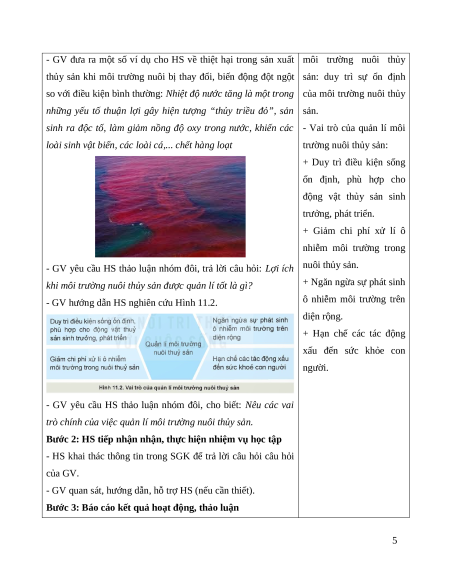 - Giúp HS thấy được vai trò của việc quản lí môi trường trong nuôi thủy sản; HS xác