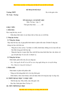 Đây là bản xem thử, vui lòng mua tài liệu để xem chi tiết (có lời giải) KẾ HOẠCH BÀI DẠY Trường THPT Họ và tên giáo viên: Tổ: Toán - Tin học