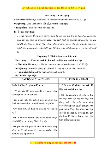 Hoạt động 2.1: Yêu cầu tổ chức, lưu trữ dữ liệu một cách khoa học