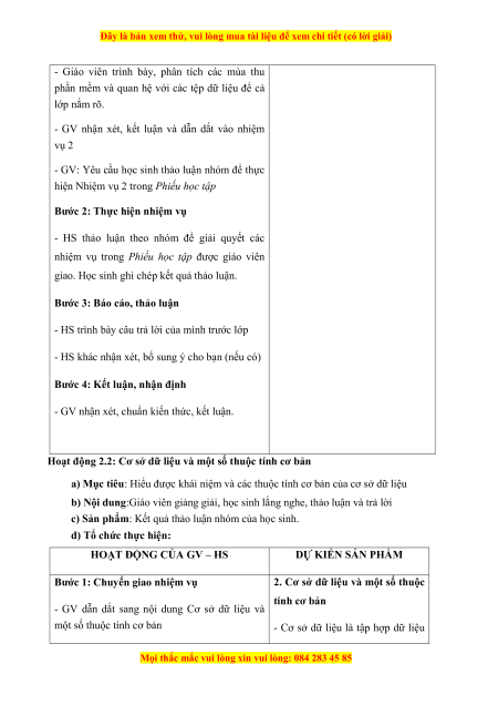 Hoạt động 2.2: Cơ sở dữ liệu và một số thuộc tính cơ bản