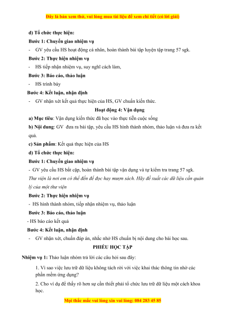 - GV phân tích, dẫn dắt, đi đến lựa chọn giải trữ một cách độc lập với việc xây
