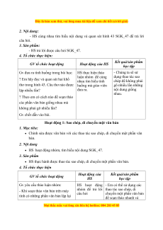 HS thực hành được thao tác sao chép, di chuyển một phần văn bản. 4. Tổ chức thực hiện Hoạt động của Kết quả/sản phẩm GV tổ chức hoạt động HS học tập