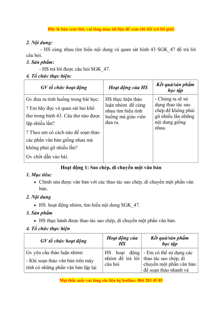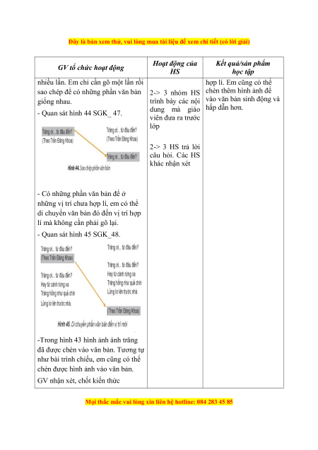 Đây là bản xem thử, vui lòng mua tài liệu để xem chi tiết (có lời giải) Hoạt động của Kết quả/sản phẩm GV tổ chức hoạt động HS học tập