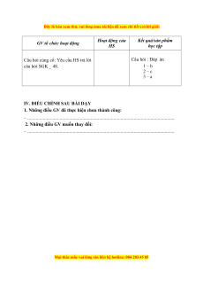 IV. ĐIỀU CHỈNH SAU BÀI DẠY