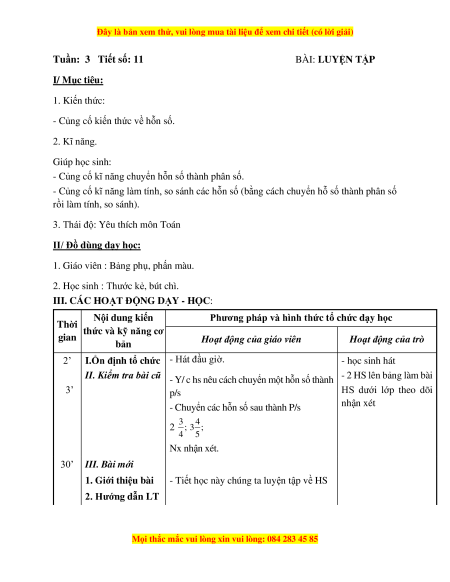 - Củng cố kiến thức về hỗn số. 2. Kĩ năng. Giúp học sinh: