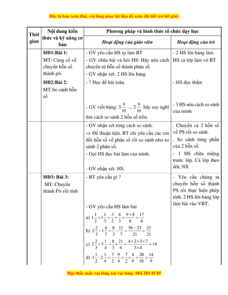 - Củng cố kĩ năng làm tính, so sánh các hỗn số (bằng cách chuyển hỗ số thành phân số