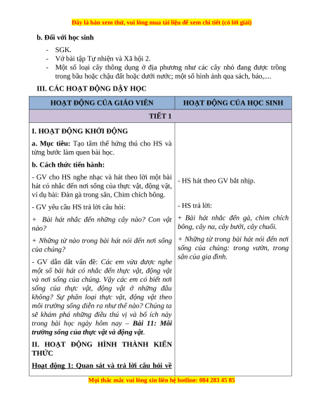 Giáo án Bài 11 Tự nhiên xã hội lớp 2 Cánh diều: Môi trường sống của thực vật và động vật
