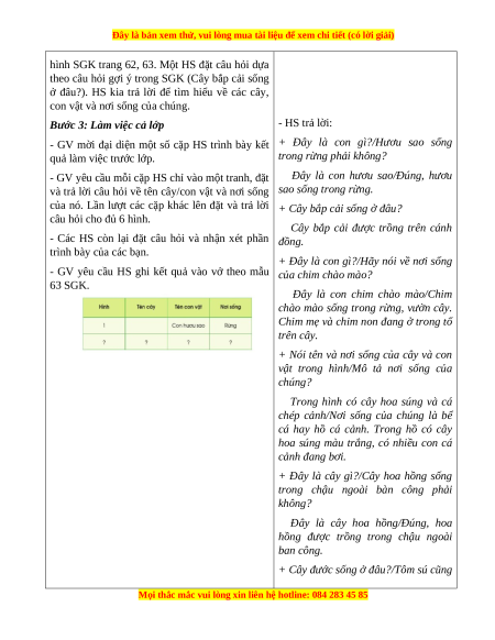 Bước 3: Làm việc cả lớp - HS trả lời: