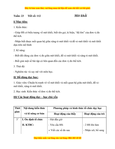 Tuần: 23 Tiết số: 112 Mét khối