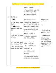 → Thể tích HLP đó là 1mét khối - 1 số HS nhắc lại khối - HS trả lời nhóm.