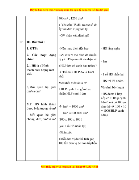2. Học sinh: Kiến thức về đơn vị đo thể tích.