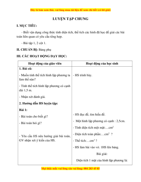 LUYỆN TẬP CHUNG I. MỤC TIÊU: