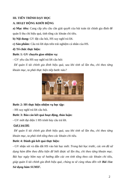 giúp quản lí tài chính gia đình hiệu quả, chúng ta sẽ cùng nhau đến với Bài 11a:
