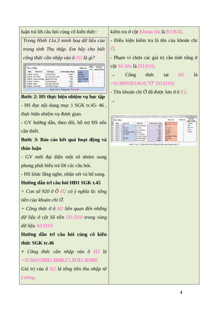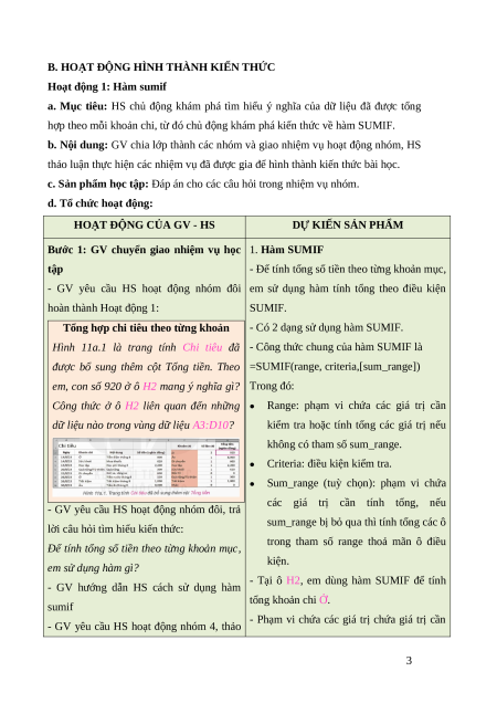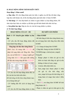 Giáo án Bài 11a: Sử dụng hàm SUMIF Tin học 9 Kết nối tri thức