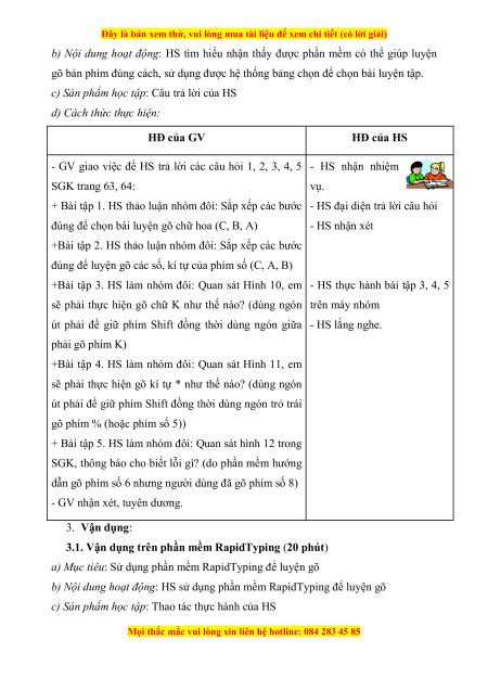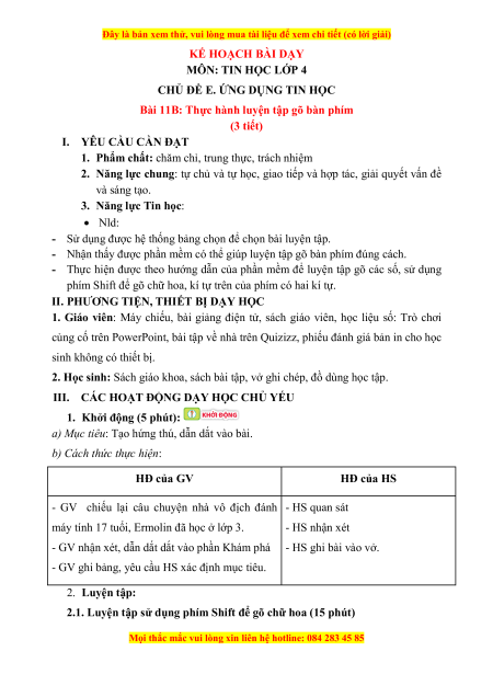 Đây là bản xem thử, vui lòng mua tài liệu để xem chi tiết (có lời giải) KẾ HOẠCH BÀI DẠY MÔN: TIN HỌC LỚP 4