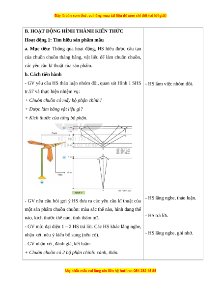 các yêu cầu kĩ thuật của sản phẩm. b. Cách tiến hành