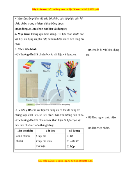 - Vật liệu dụng cụ đủ số lượng theo nhóm HS bao gồm: giấy bìa màu, giấy màu,