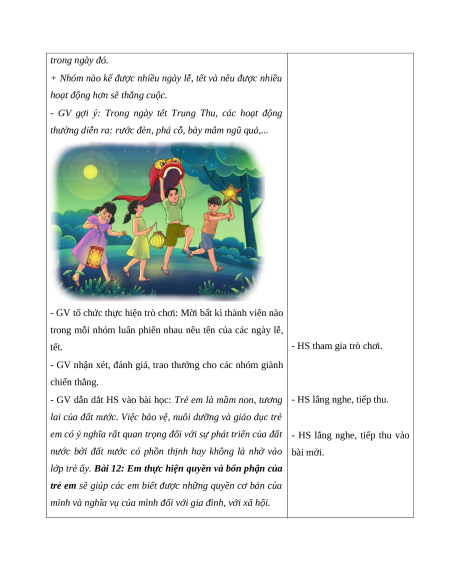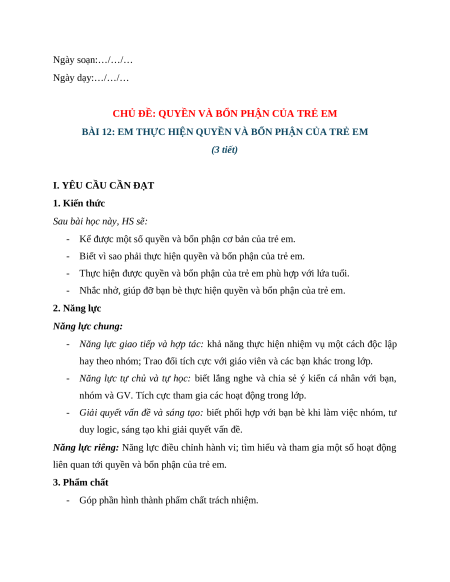 BÀI 12: EM THỰC HIỆN QUYỀN VÀ BỔN PHẬN CỦA TRẺ EM (3 tiết)