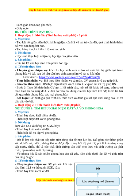 - Phân biệt được đất và vỏ phong hóa. b. Nội dung