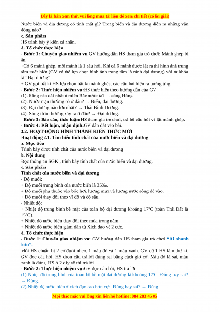 Trình bày được tính chất của nước biển và đại dương b. Nội dung
