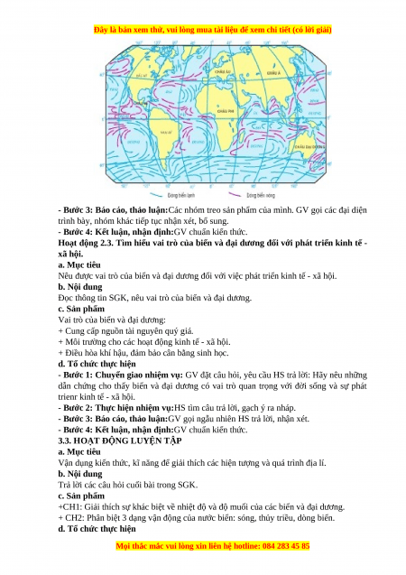 Nước biển và địa dương có tính chất gì? Trong biển và địa dương diễn ra những vận động nào? c. Sản phẩm
