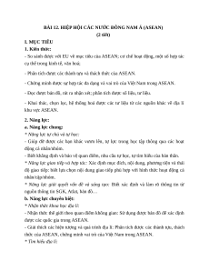 BÀI 12. HIỆP HỘI CÁC NƯỚC ĐÔNG NAM Á (ASEAN) (2 tiết) I. MỤC TIÊU 1. Kiến thức: