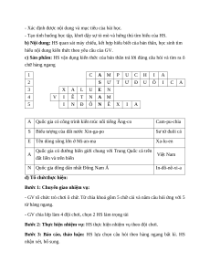c) Sản phẩm: HS vận dụng kiến thức của bản thân trả lời đúng câu hỏi và tìm ra ô chữ hàng ngang 1 C A M P U C H I A 2 S Ư T Ư Đ U Ô I C A 3 X A L U E N 4 V I Ê T N A M 5 I N Đ Ô N Ê X I A