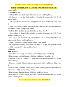 BÀI 12: TỰ NHIÊN, DÂN CƯ, XÃ HỘI VÀ KINH TẾ ĐÔNG NAM Á I. MỤC TIÊU 1. Yêu cầu cần đạt