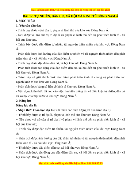 BÀI 12: TỰ NHIÊN, DÂN CƯ, XÃ HỘI VÀ KINH TẾ ĐÔNG NAM Á