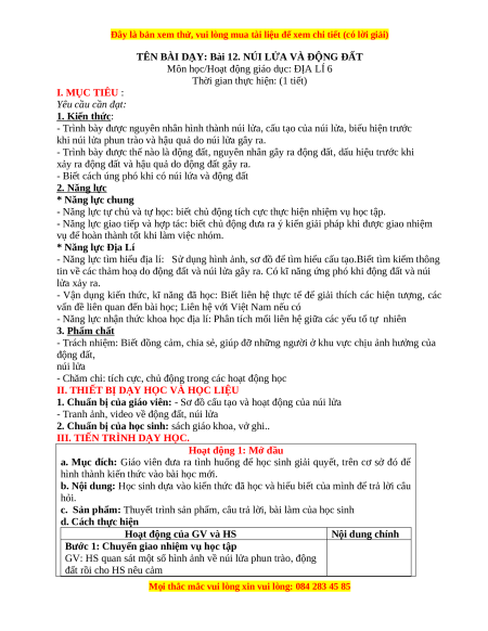 Giáo án Bài 12 Địa lí 6 Kết nối tri thức (2024): Núi lửa và động đất