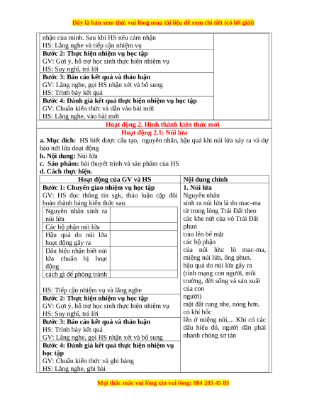 a. Mục đích: HS biết được cấu tạo, nguyên nhân, hậu quả khi núi lửa xảy ra và dự