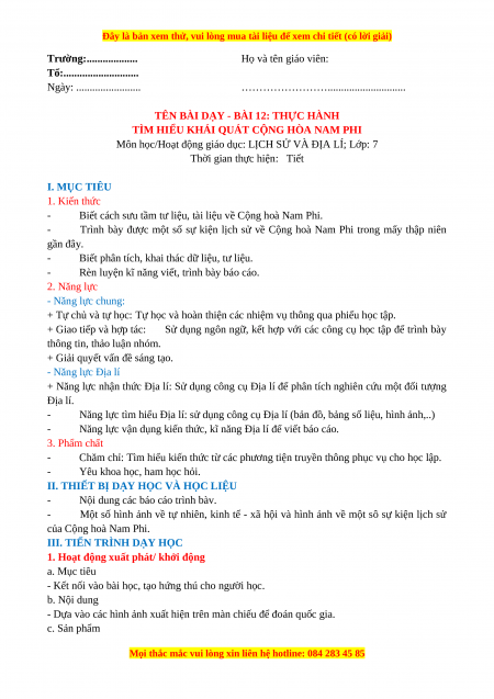 Giáo án Bài 12 Địa lí 7 Kết nối tri thức (2024): Thực hành Tìm hiểu khái quát Cộng hòa Nam Phi