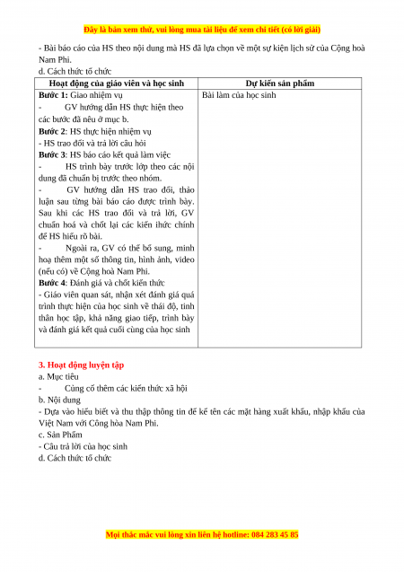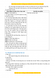 - Bài báo cáo của HS theo nội dung mà HS đã lựa chọn về một sự kiện lịch sử của Cộng hoà Nam Phi. d. Cách thức tổ chức