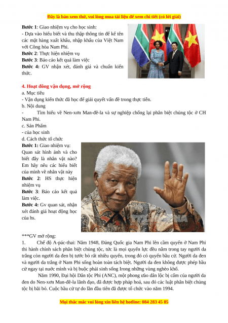 - HS chọn được nội dung tìm hiểu về một số sự kiện lịch sử của Cộng hoà Nam Phi.