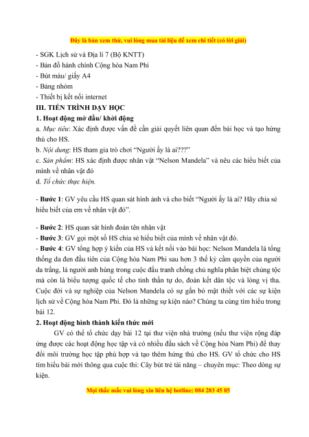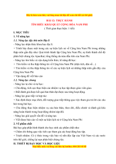 Giáo án Bài 12 Địa lí 7 Kết nối tri thức (Phiên bản 2): Thực hành: Tìm hiểu khái quát Cộng hoà Nam Phi
