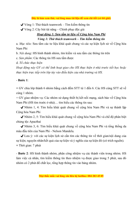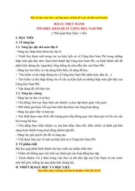 + Viết được báo cáo về một sự kiện lịch sử ở Cộng hòa Nam Phi 2. Về phẩm chất